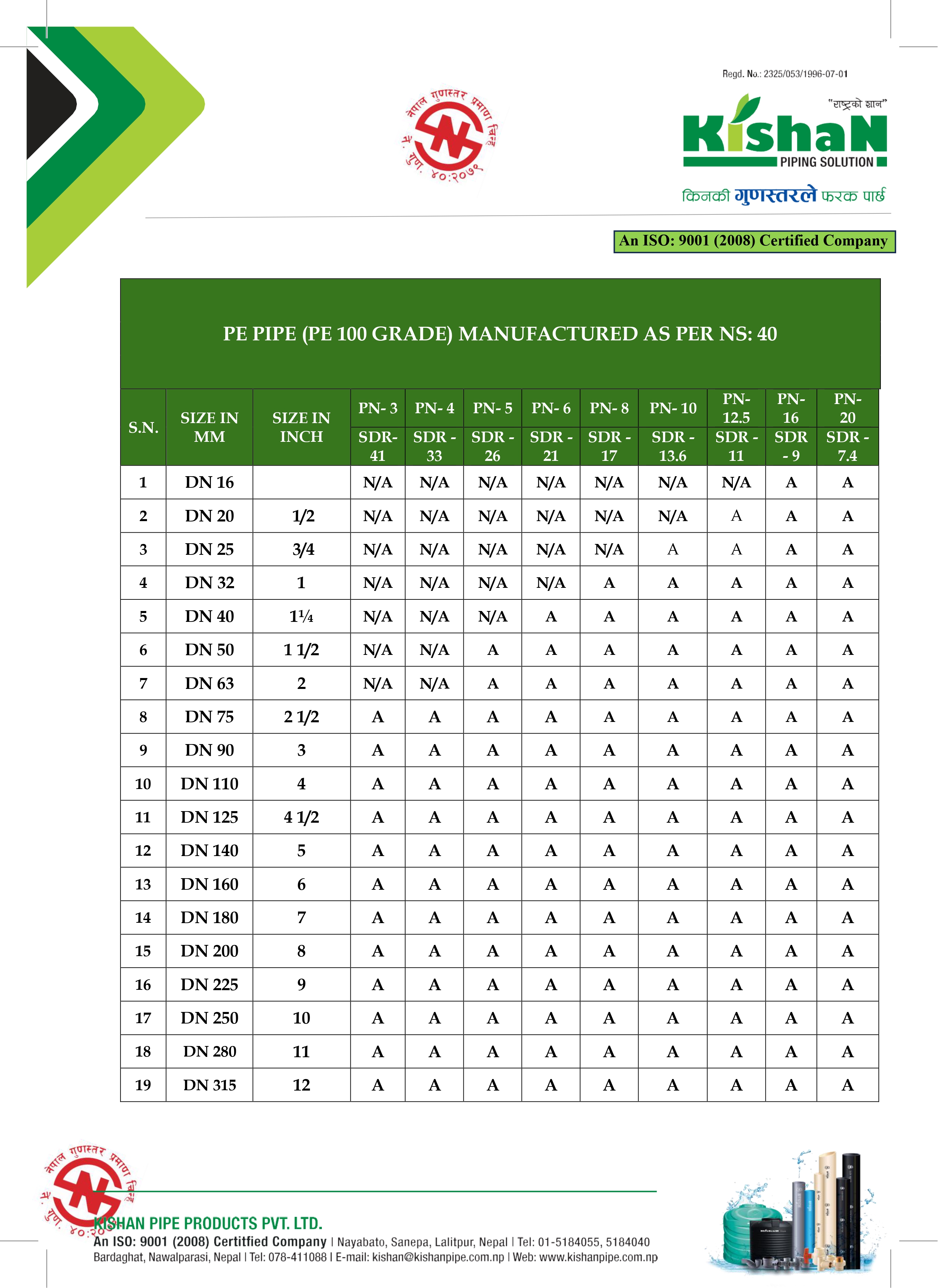 For more than 30 years, Kishan Pipe Products Pvt. Ltd. has been one of Nepal’s most trusted manufacturers of HDPE pipes, CPVC pipes and fittings, UPVC/PVC pipes and fittings, and durable water tanks. Established in 2052 B.S., we have grown into a leading name in Nepal’s plastic water pipe and tank industry.Our products are engineered to withstand Nepal’s diverse climate and are trusted for reliable performance in plumbing, irrigation, drainage, and water storage. Recognized by the Government of Nepal, Kishan Pipe stands for durability, efficiency, and continuous innovation. Whether for homes, commercial projects, or large-scale infrastructure, Kishan Pipe delivers long-lasting pipes and water storage solutions you can count on.https://kishanpipe.com.np